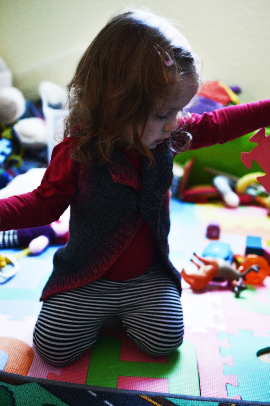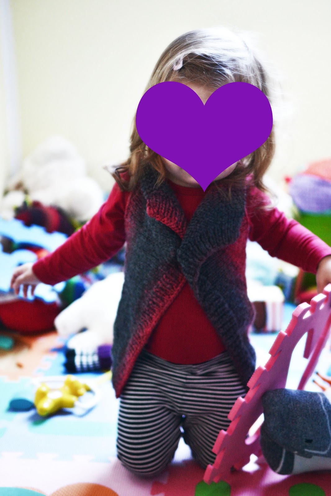 Ich habe vor einiger Zeit eine Anleitung für eine ähnliche Weste irgendwo im Netz gesehen. Wo, hab ich leider nicht mehr gefunden. Weil mir das aber für mich selbst ein zu großes Projekt war (ich bin ja nicht faul oder so ^^) hab ich das für meine Tochter gemacht. Diese Weste hier entspricht Größe 86/92, aber das sollte sich sehr leicht in der Größe anpassen lassen durch größere Nadeln, dickere Wolle oder einfach mehr Maschen.
