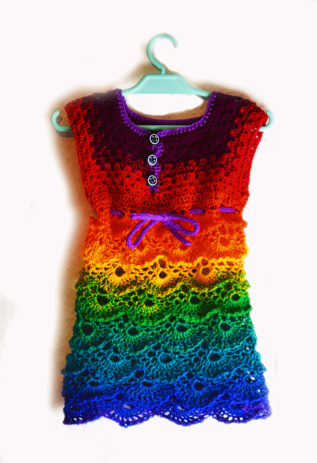 Das Oberteil hab ich allerdings abgeändert weil ich gerne kurze Ärmel statt Trägern haben wollte. Das hab ich mehr oder weniger Freihändig gemacht, aber HIER gibt es eine Anleitung für ein ähnliches Oberteil. Nach dem Oberen Teil habe ich zwei Runden halbe Stäbchen gemacht, in denen ich genug Maschen hinzugefügt habe, damit ich auf eine Zahl teilbar durch 15 komme um dann mit dem Rock aus den Videos weiterzumachen.